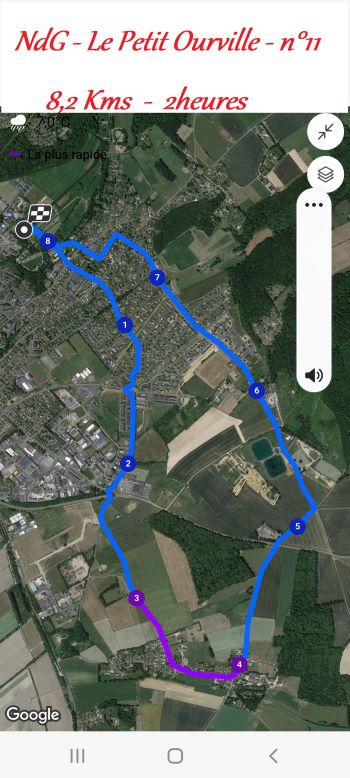Nous étions donc 19 à nous lancer vers le Petit Ourville. On peut dire que le temps a été médiocre mais, les averses et le vent n'étaient pas violents. Les 8,2 kilomètres ont été baclés en moins de 2 heures a la moyenne de 4,5 Kms/Heure. Bref, le parcours s'est révélé sympathique quand même.